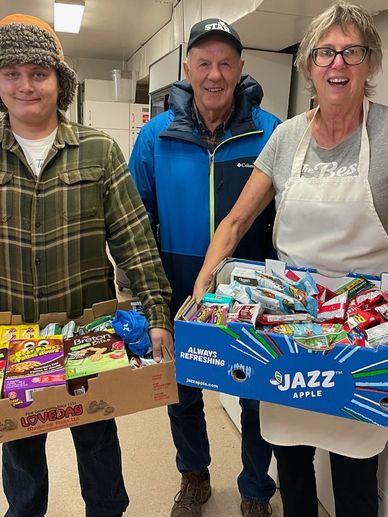 We provide 30 meals for Youth for Christ, three days a week during the school year. Youth for Christ runs a lunch time program for kids from the middle years school. We also provide funding to the Selkirk school breakfast programs.
