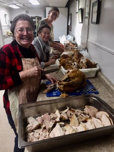 Easter, Thanksgiving and Christmas we prepare a special meal served by our volunteers. During our Thanksgiving and Christmas lunches we distribute scarves, mitts and hats that were knitted or donated by people from Selkirk and Winnipeg.