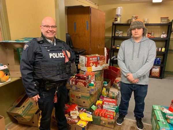 Blayse Reichert donated $54.50 from the proceeds of his lemonade stand to Our Daily Bread Soup Kitchen. Officer Paul Human thanking Blayse on behalf of Our Daily Bread Soup Kitchen. Officer Human is a volunteer and board member of Our Daily Bread Soup Kitcen in Selkirk.